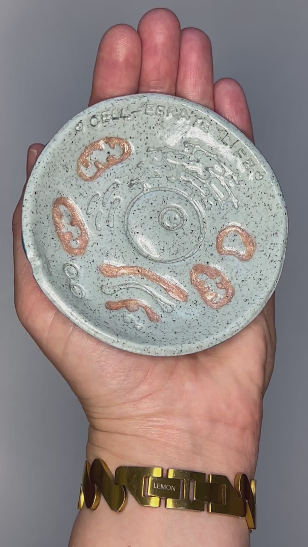 Dusty blue Cell Trinket Dish, Handmade, CELL-EBRATE LIFE, ~3 to 3.5 in
